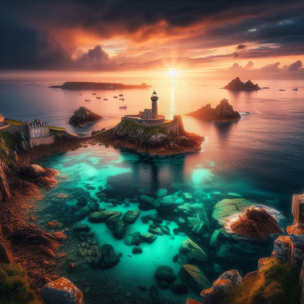 La Mer d’Iroise reflète la profondeur de l’esprit humain, tantôt paisible, tantôt tourmenté, mais toujours en quête d’équilibre et de lumière.